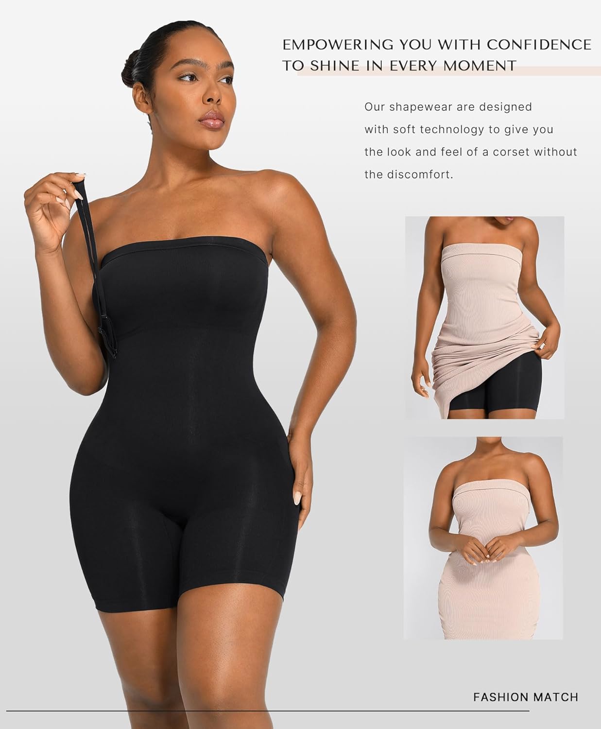 SHAPELLX Womenu0027s Shapewear Bodysuits Tummy Control Butt Lifter Body Shaper Strapless Seamless Mid Thigh Jumpsuit Tops
